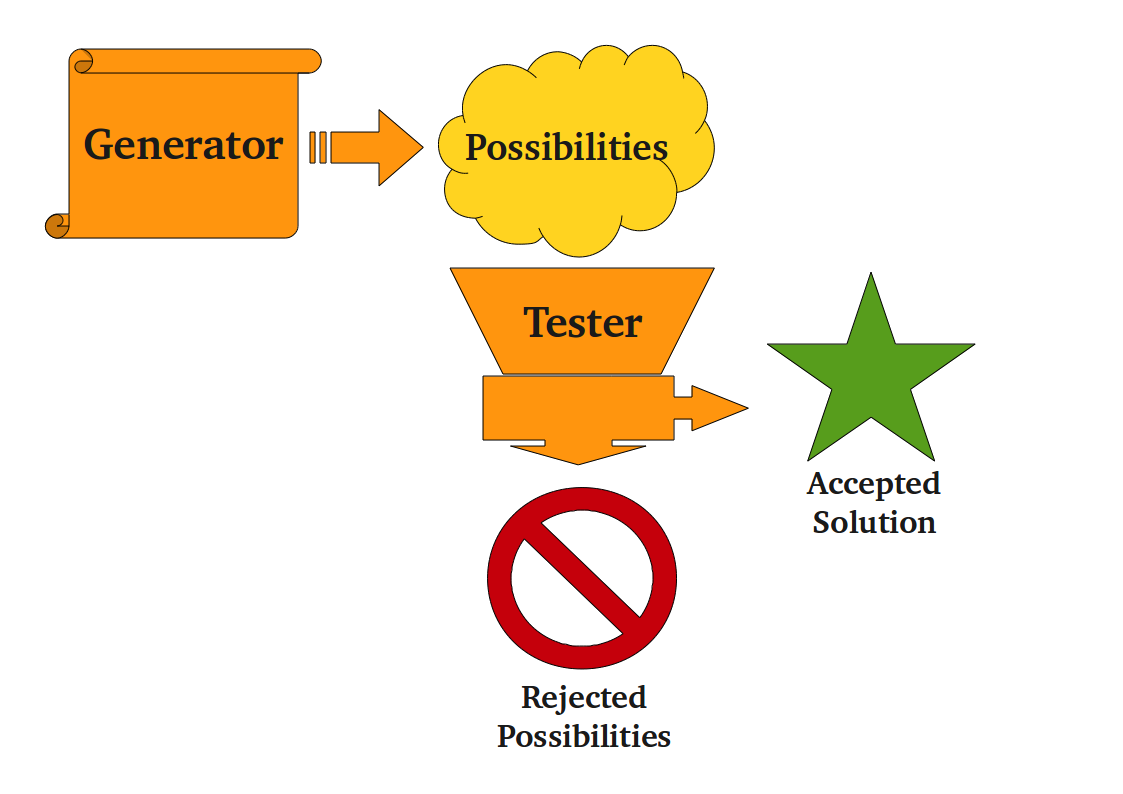 Why glorify such as simple computation with a name? As we eluded to earlier it allows us to answer concisely questions like: "How are you going to solve this problem?". We can now answer: "I am going to solve this problem using Generate and Test". Even more importantly we can now talk precisely about the properties of the Generator and the Tester.